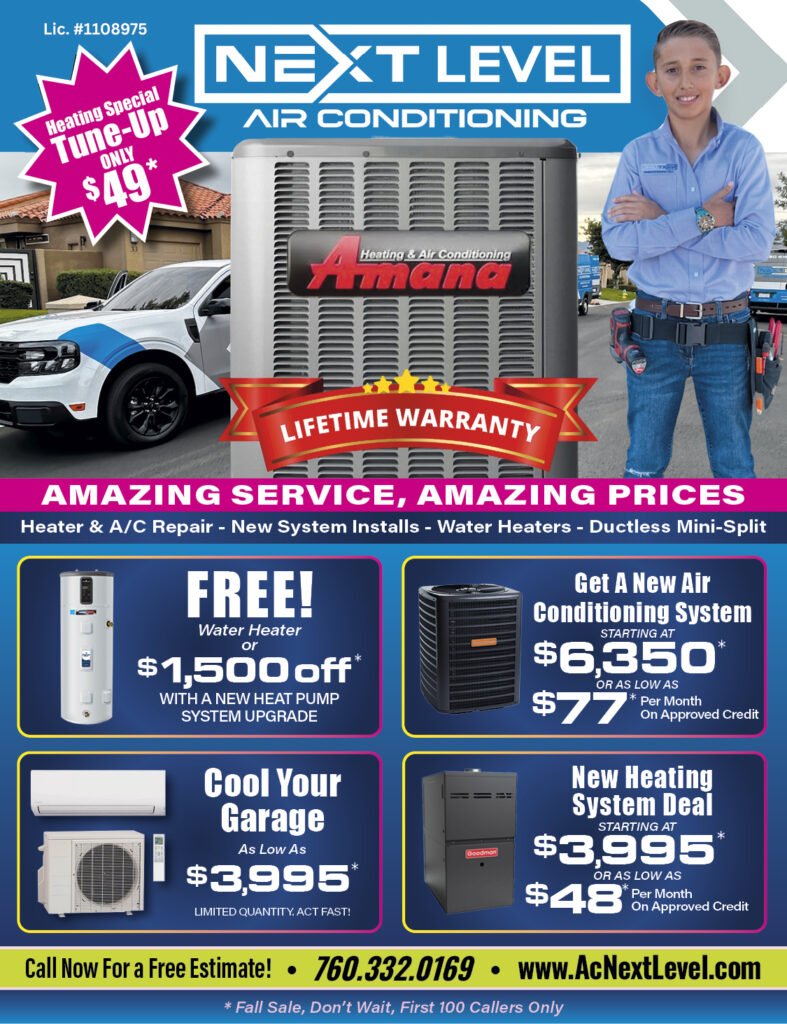 Welcome to Next Level Air Conditioning, your trusted local partner for superior HVAC solutions in the Coachella Valley. At Next Level, we go beyond the ordinary to provide skilled and affordable services that redefine your comfort. Our dedicated team is well-versed in servicing a diverse range of brands and models, ensuring quality repairs done right the first time, all at a great price.